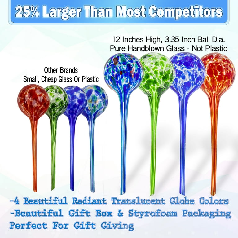 Amazon Com Plant Watering Globes Automatic Watering Aqua Globe Mini Decorative Hand Blown Glass Small Plant Bulbs 4pc Deluxe Set Patio Lawn Garden